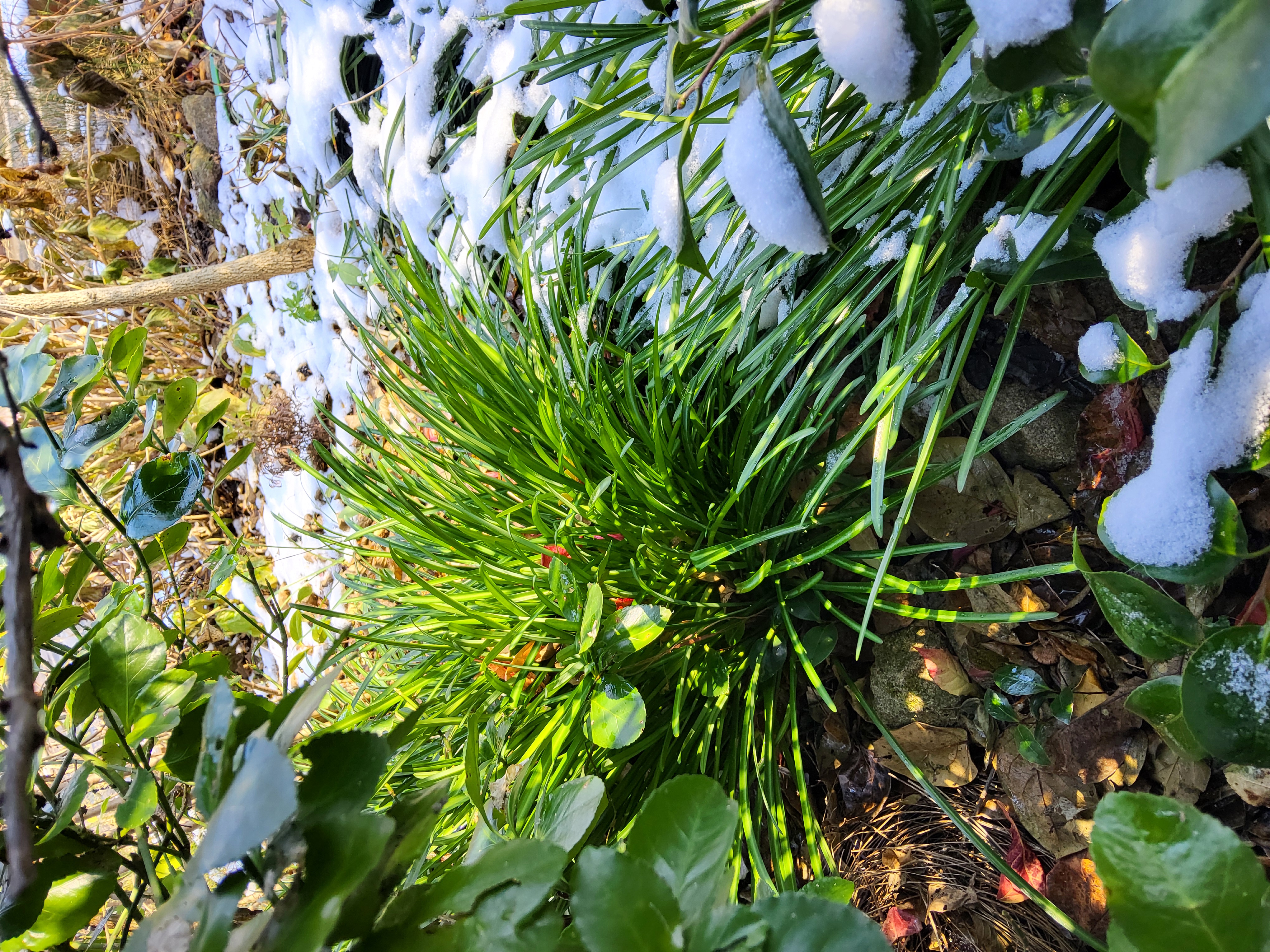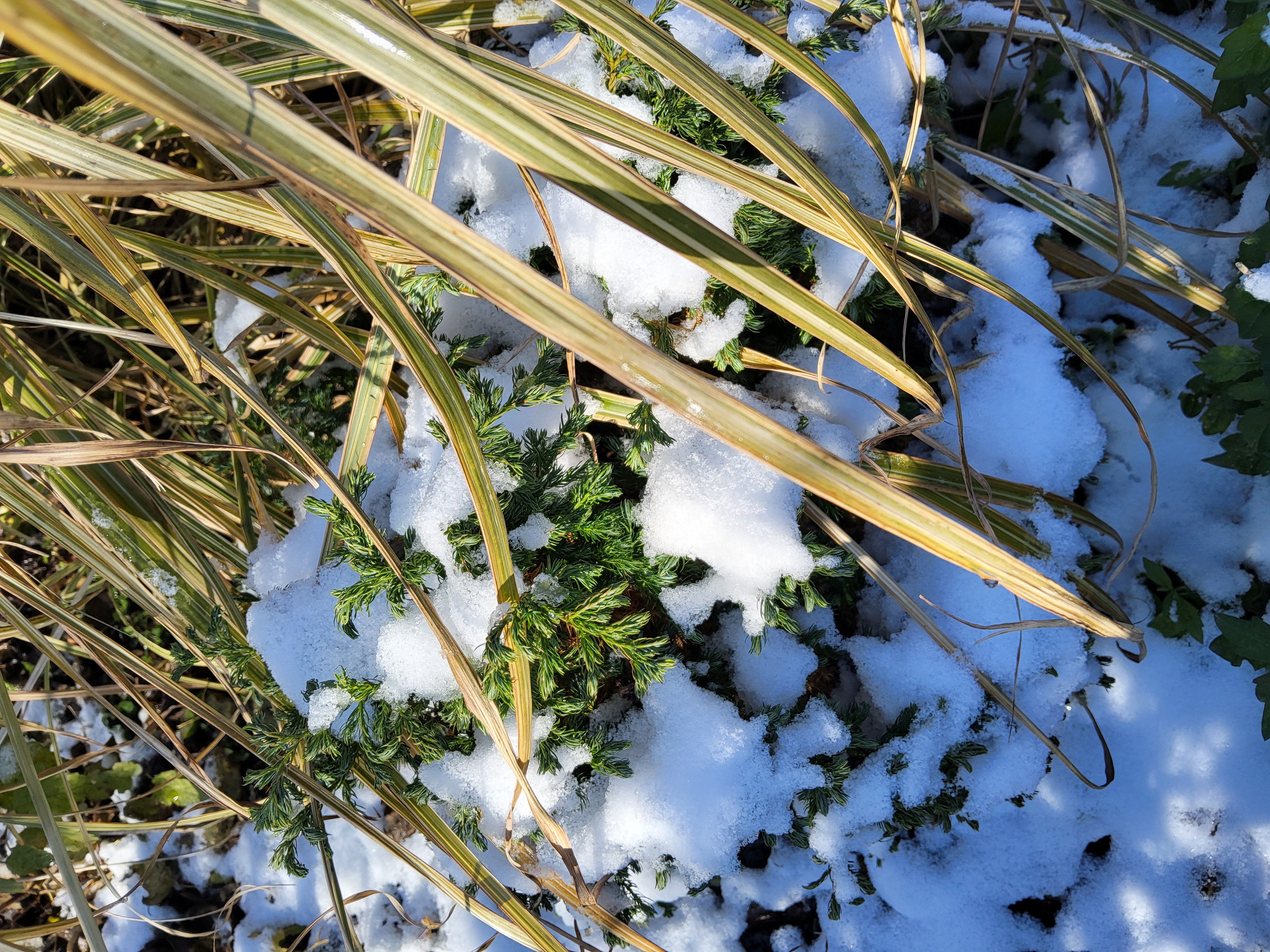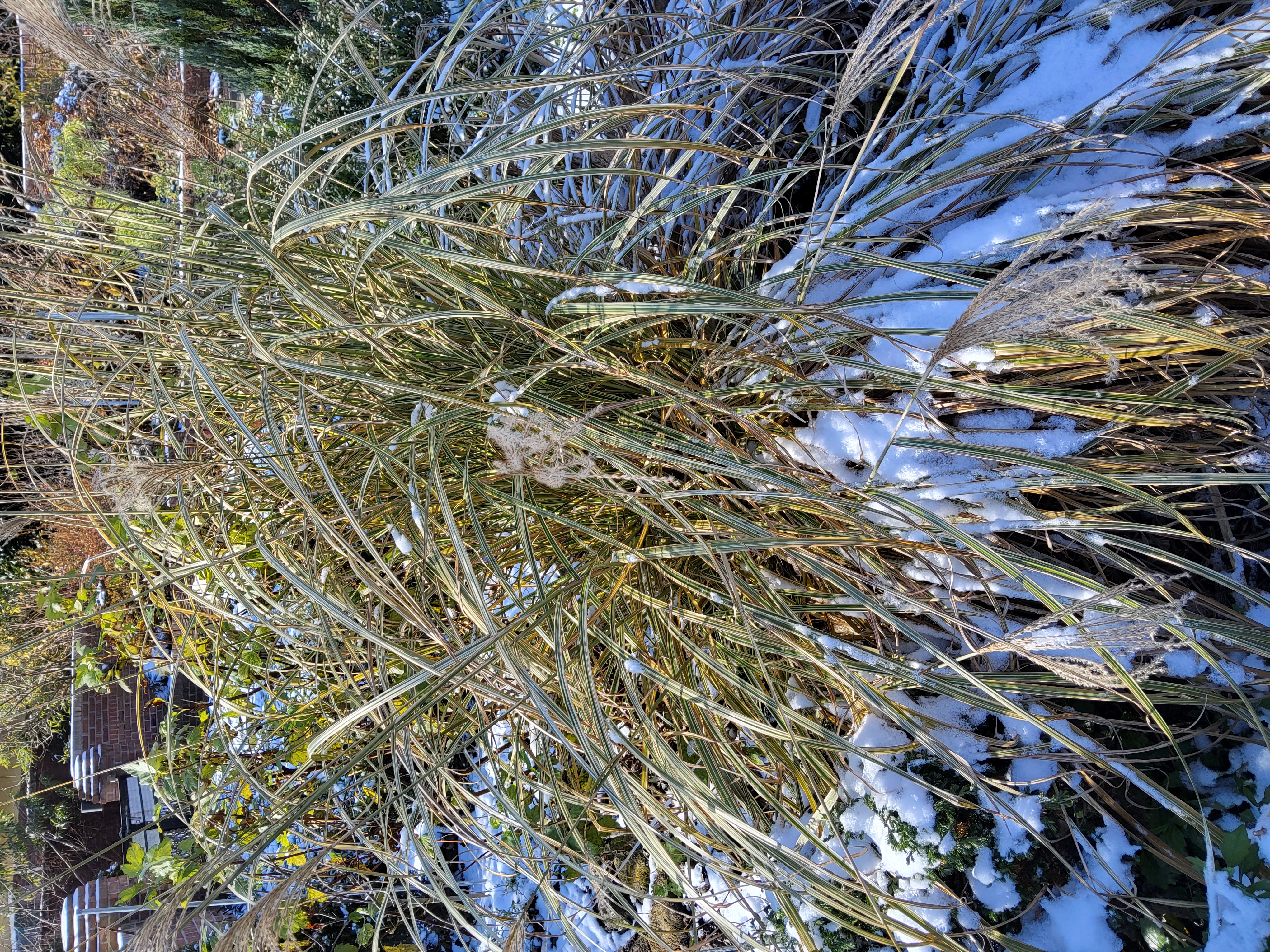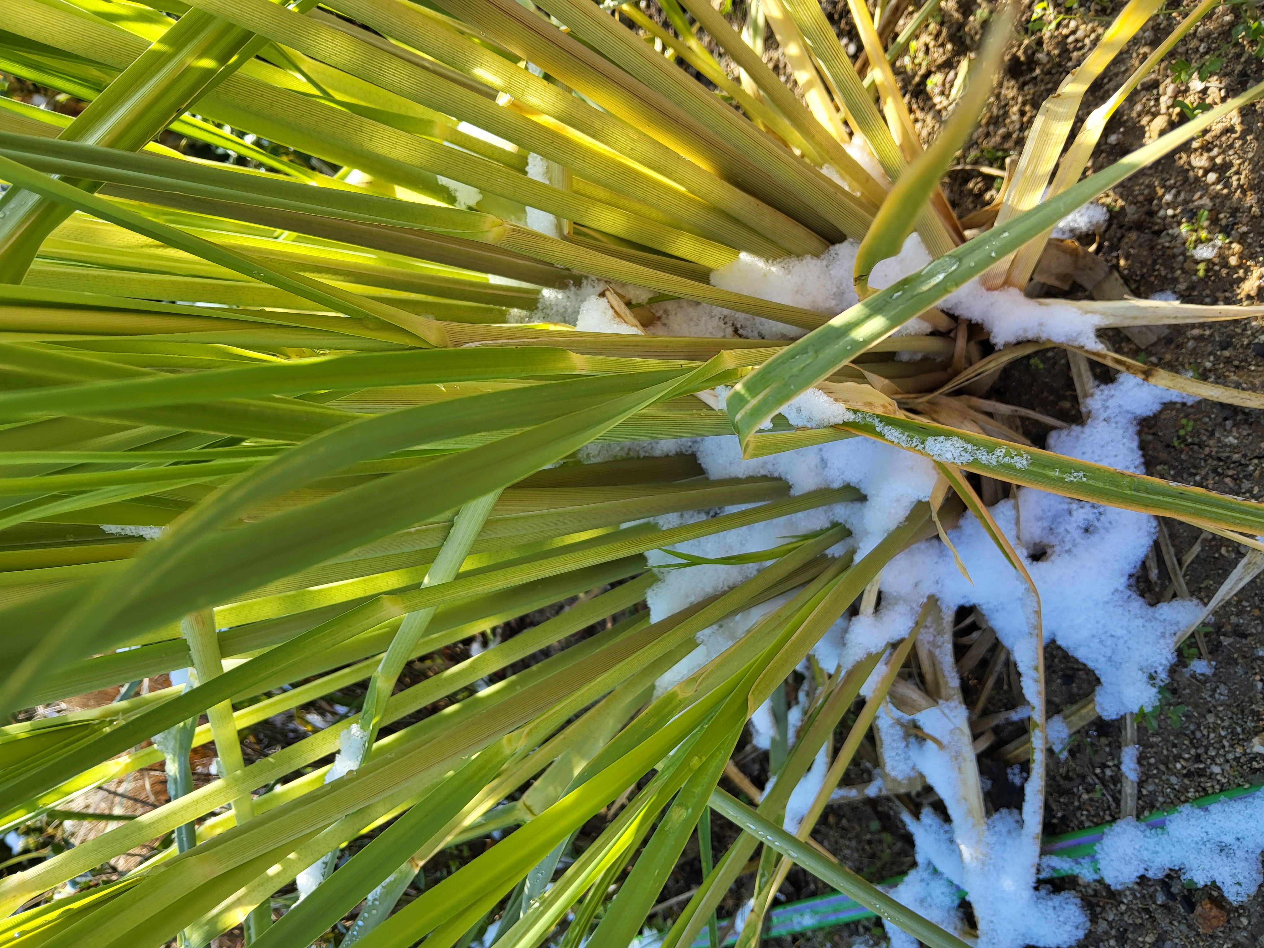 부쩍 커진 팜파스 밑둥에도 눈이 들어갔다