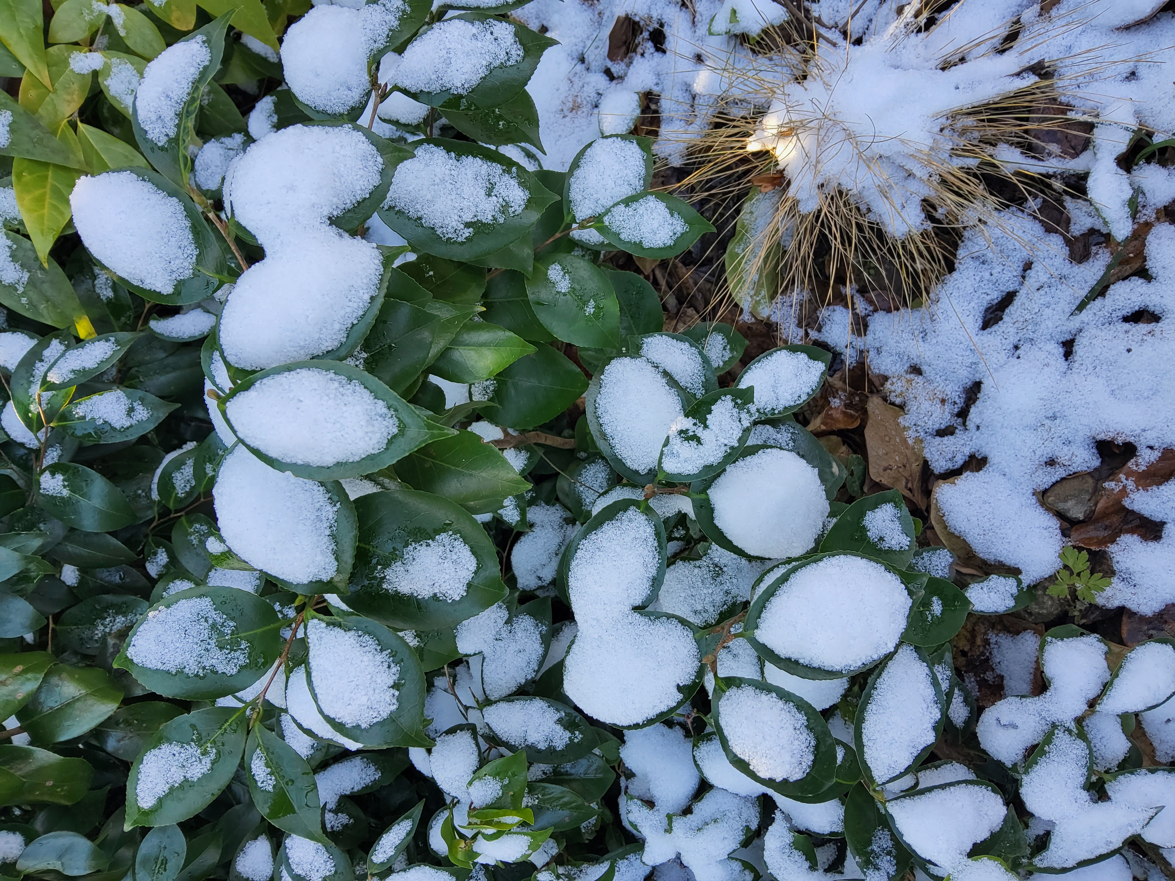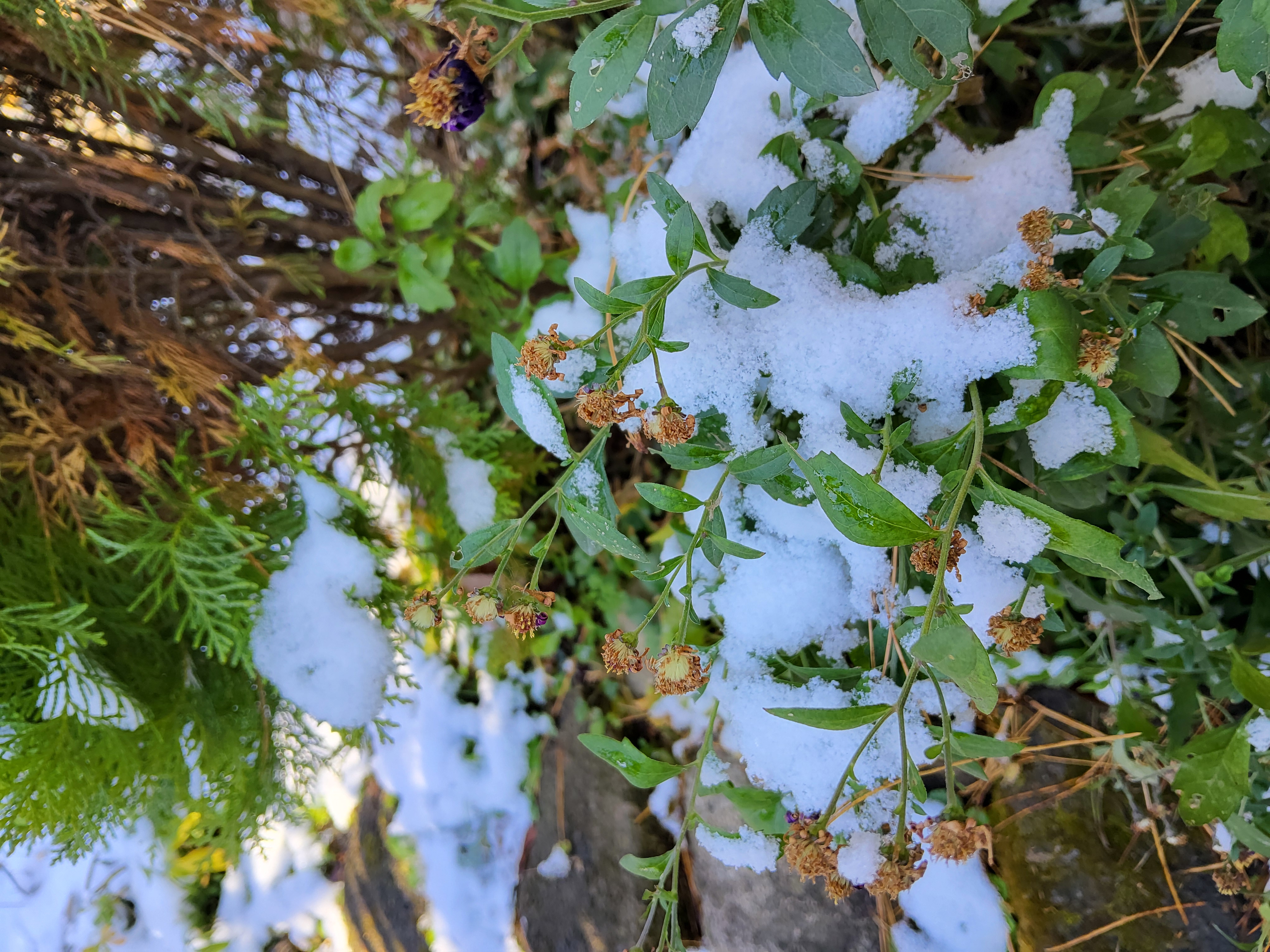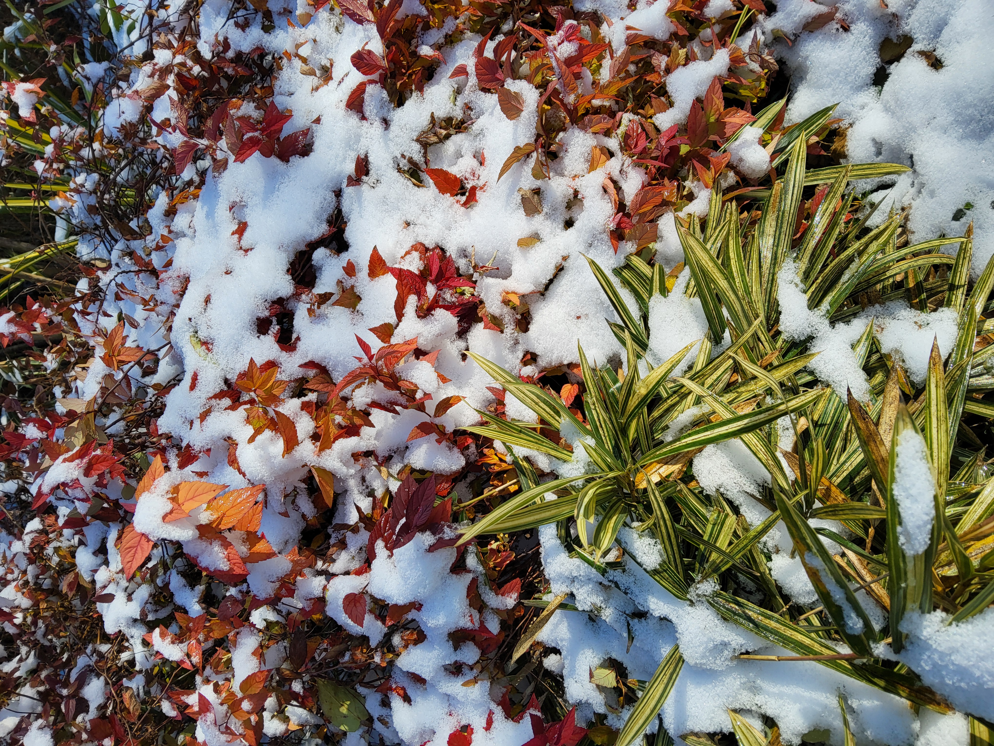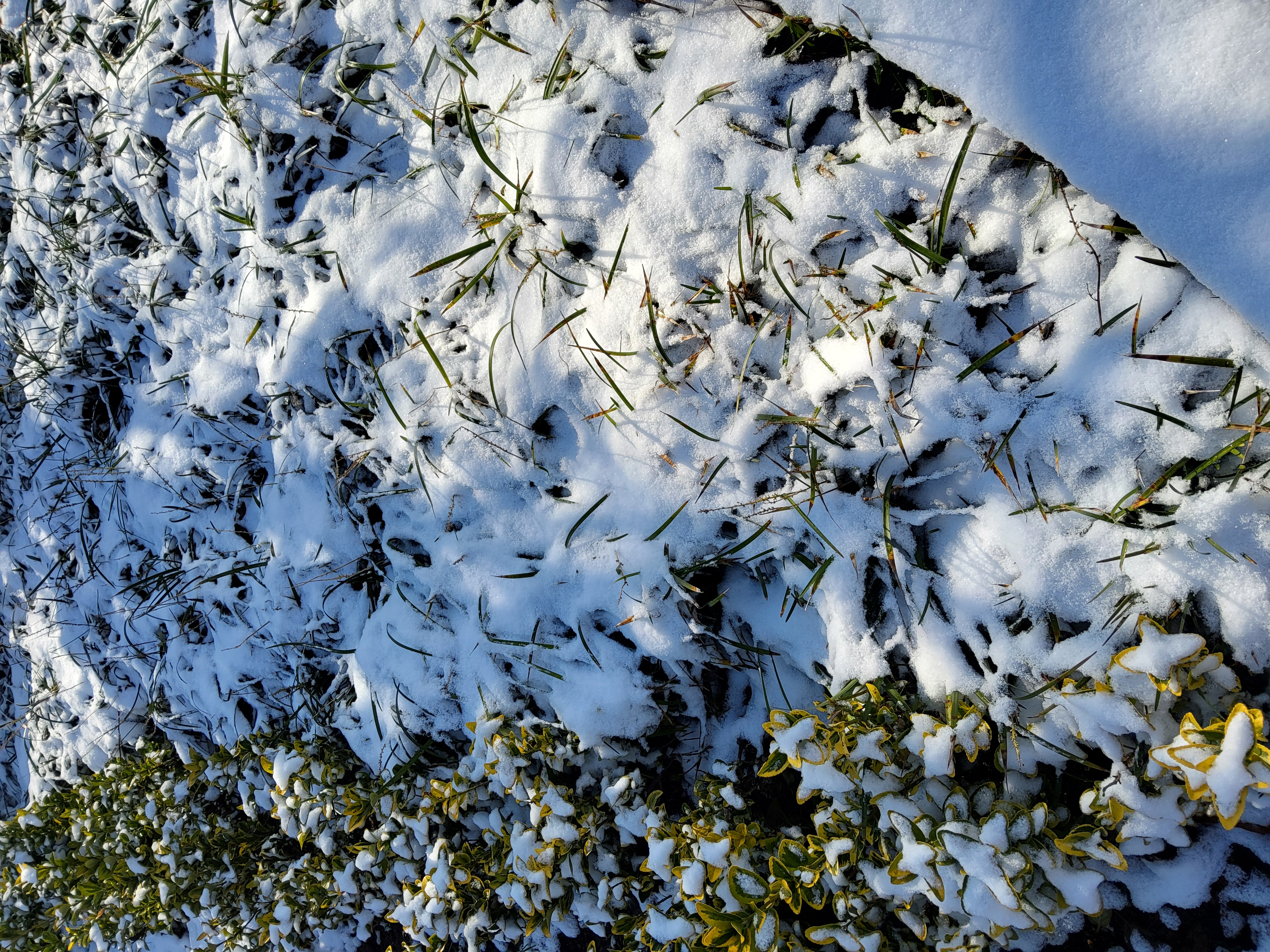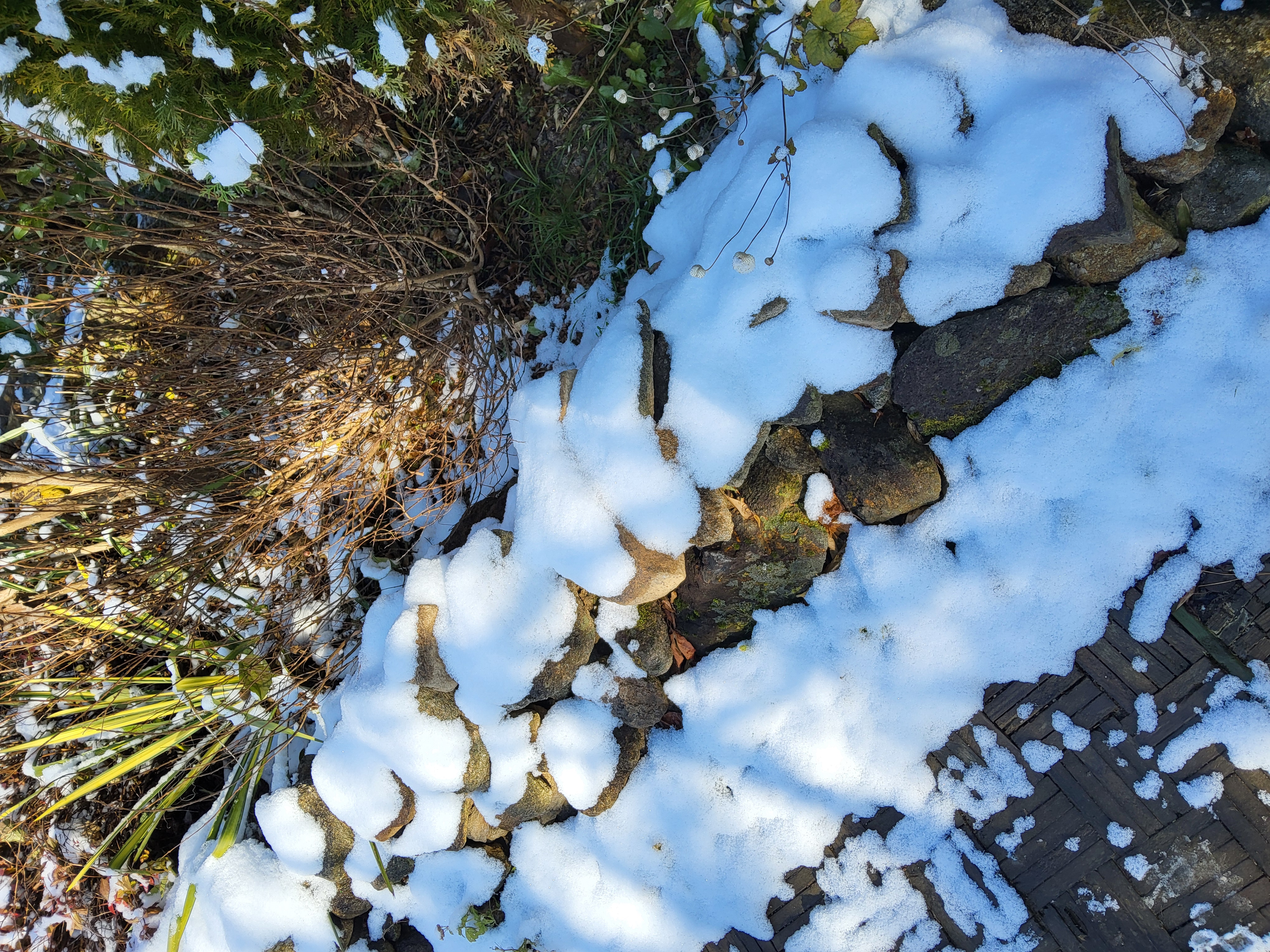 부쩍 커진 팜파스 밑둥에도 눈이 들어갔다