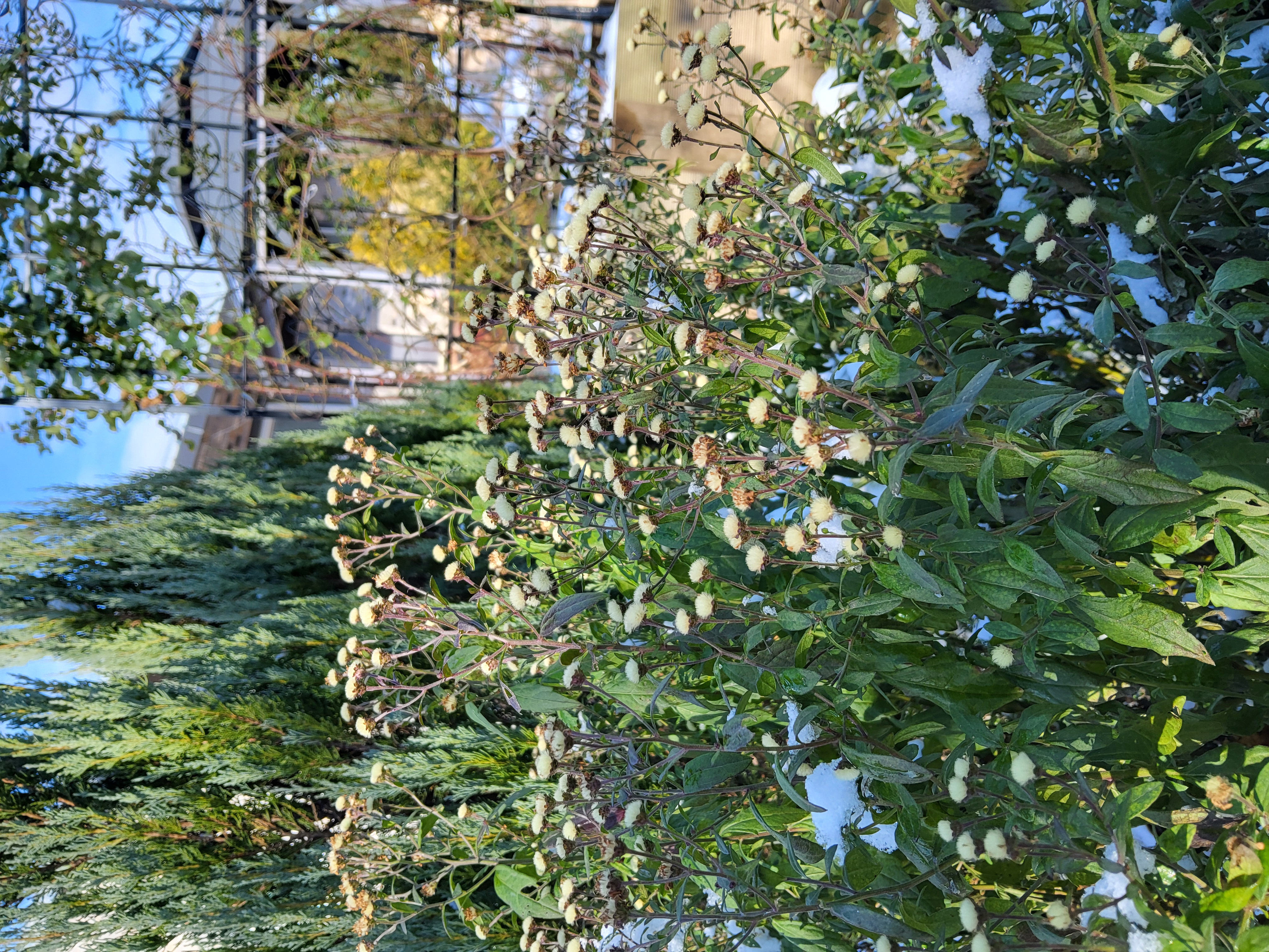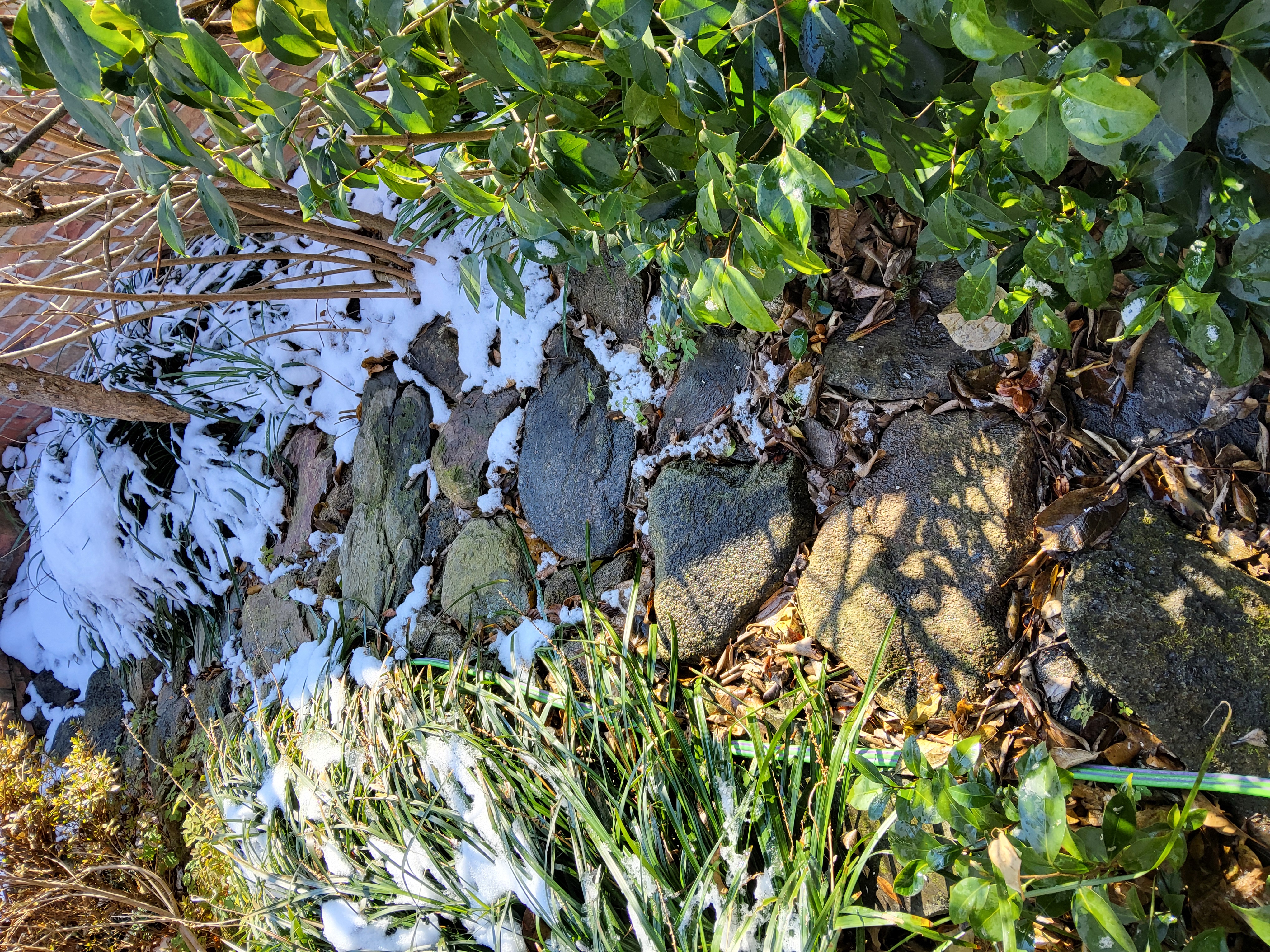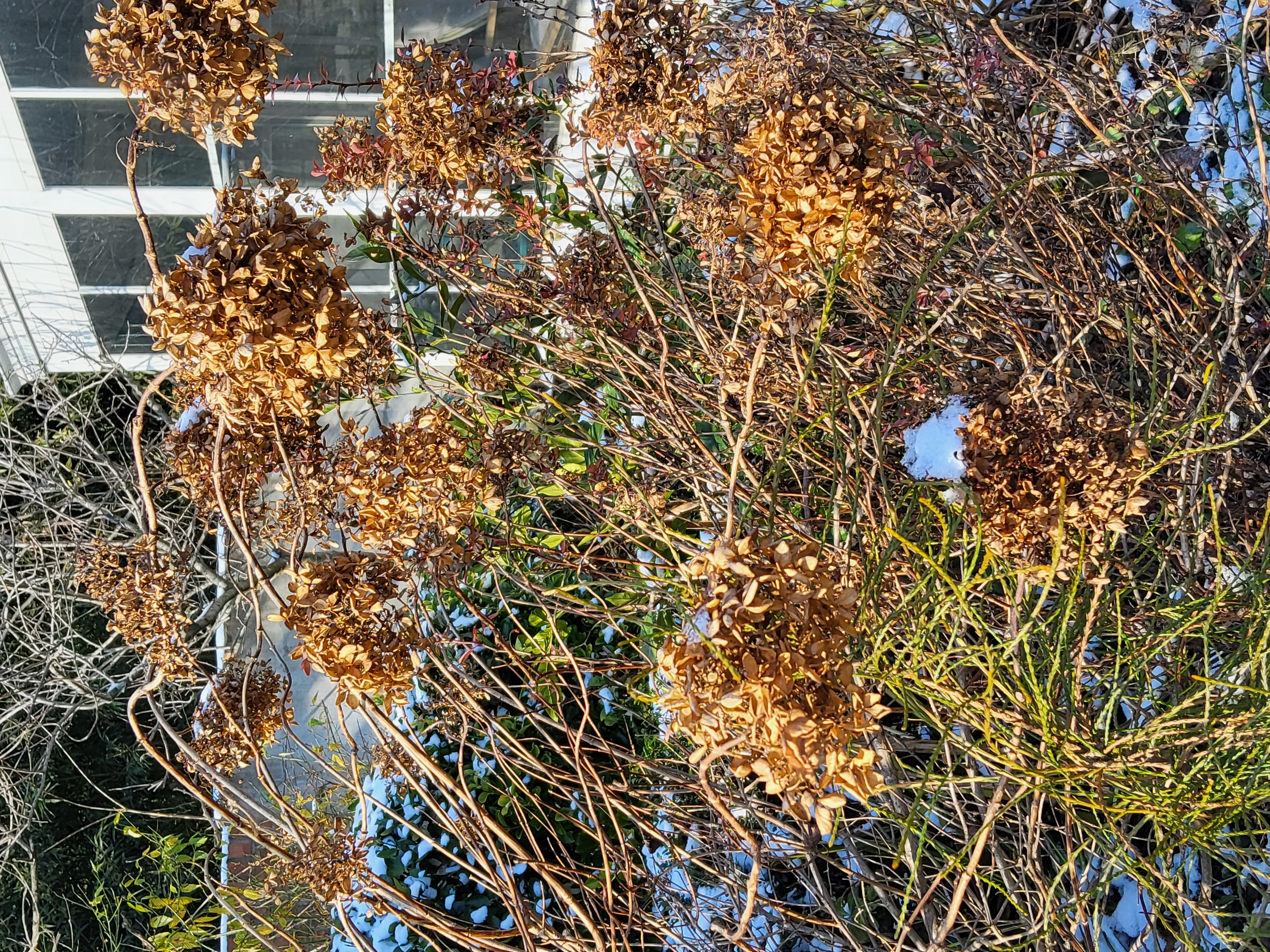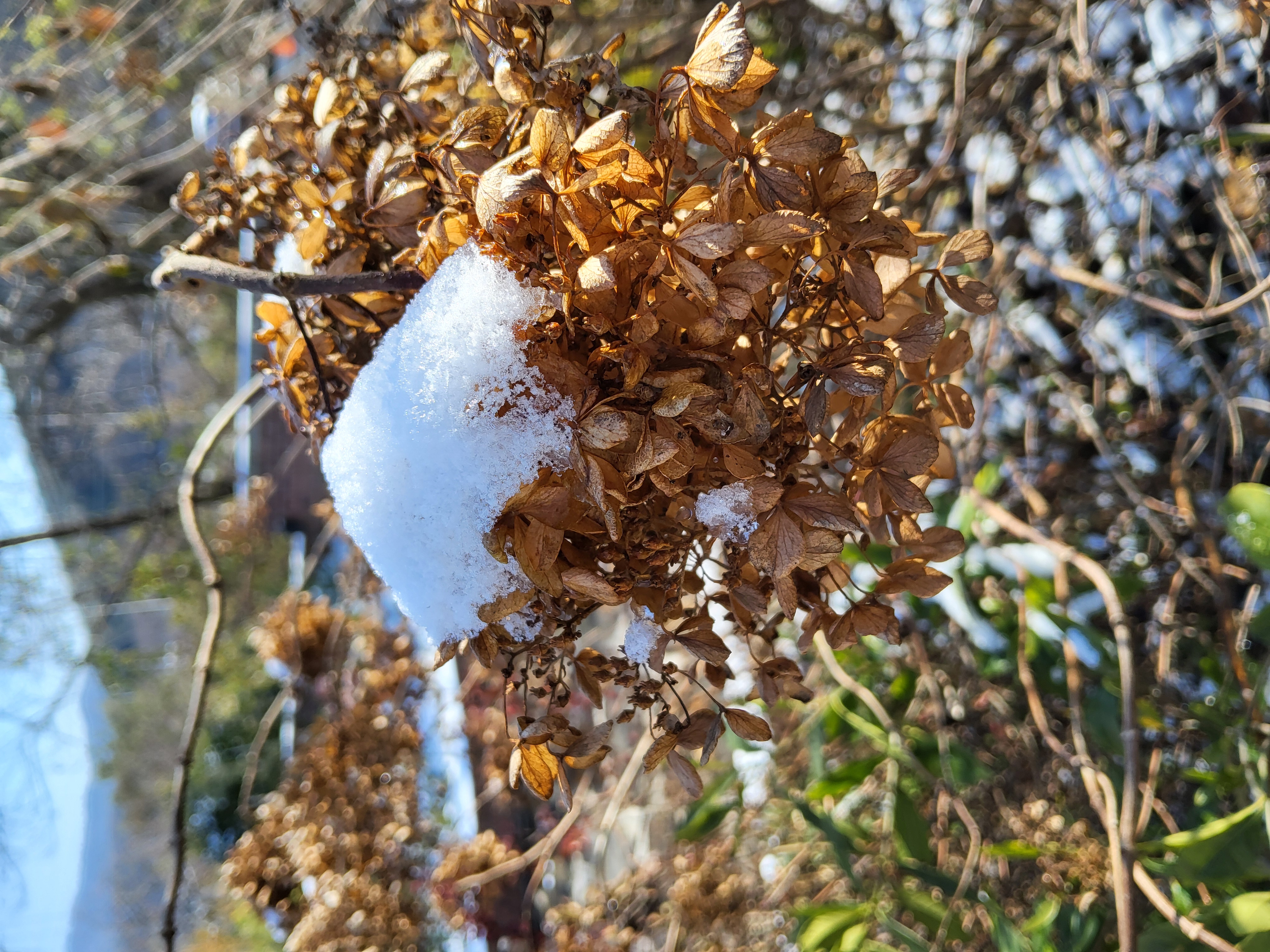 부쩍 커진 팜파스 밑둥에도 눈이 들어갔다