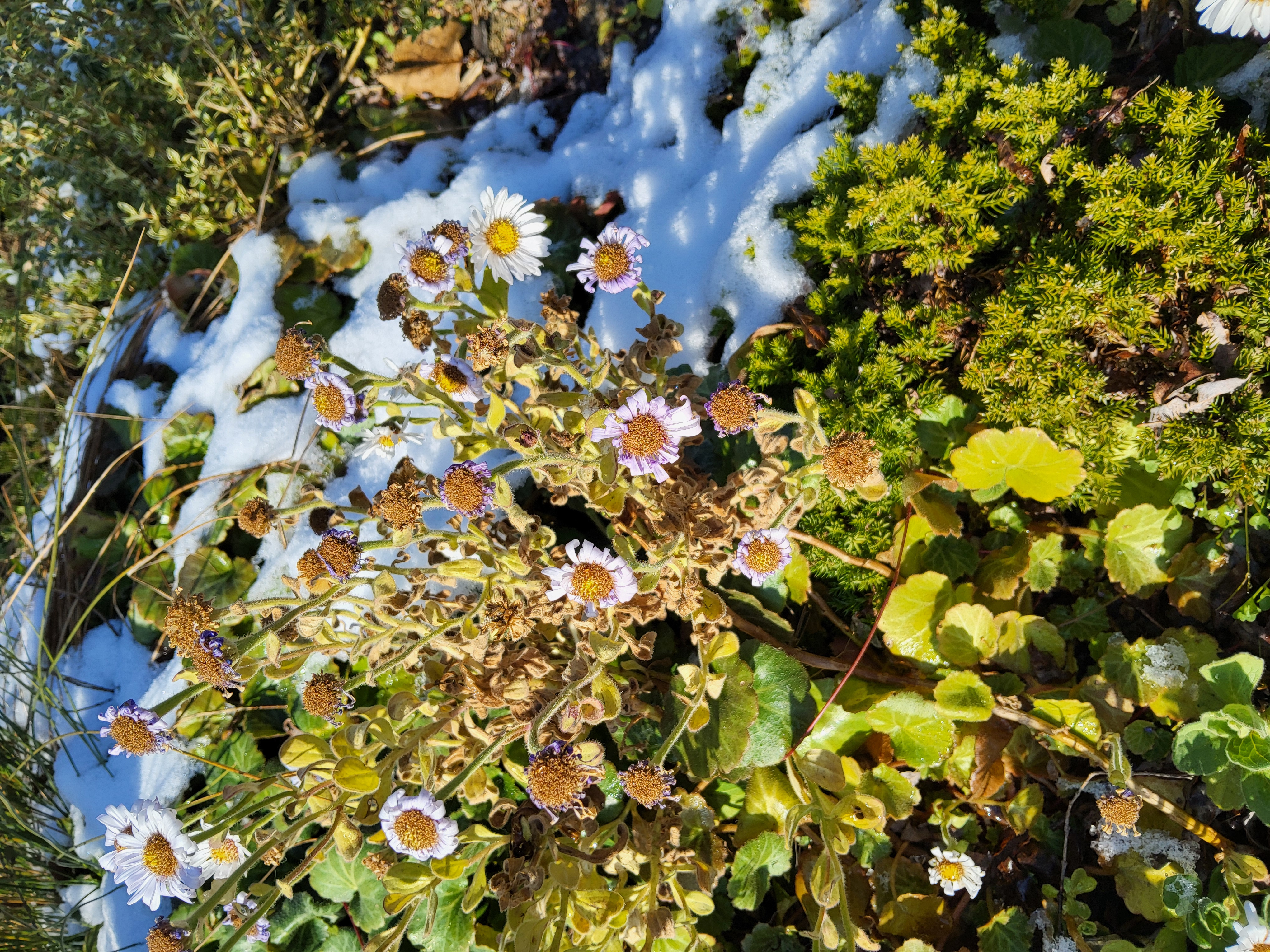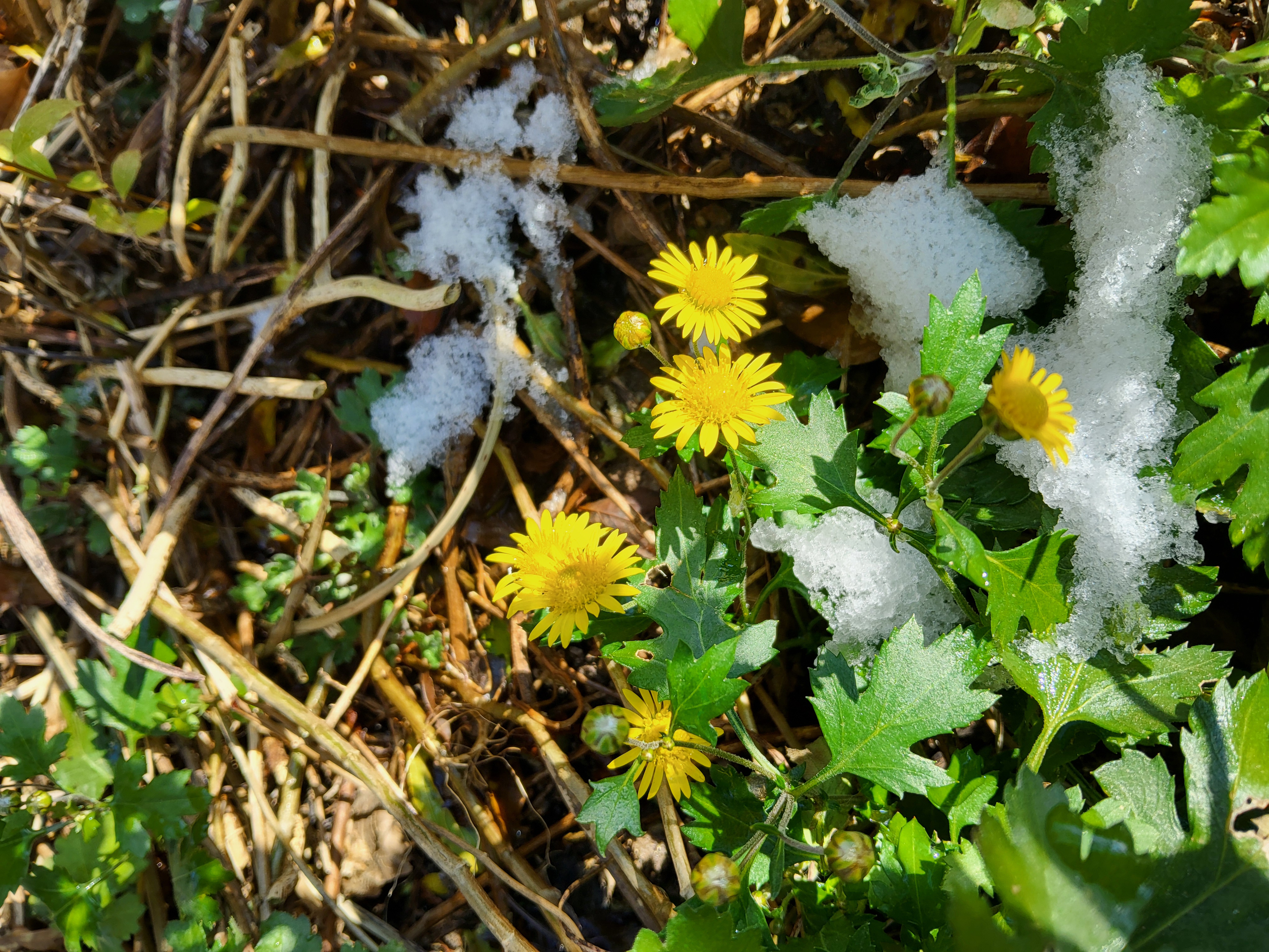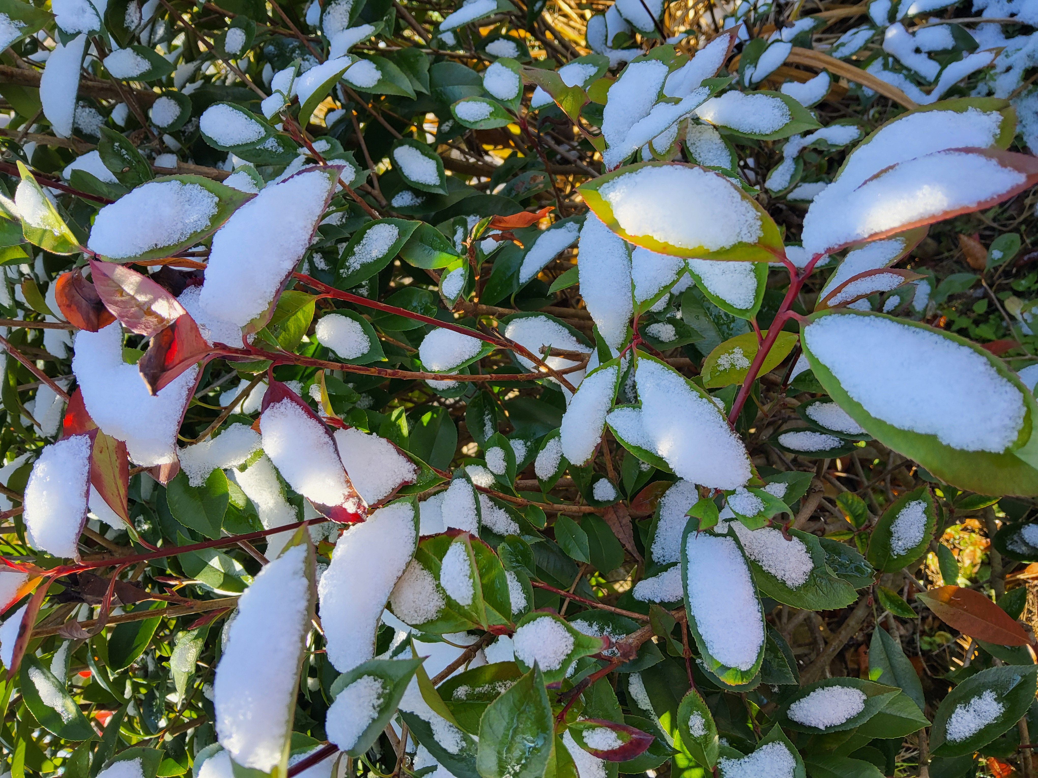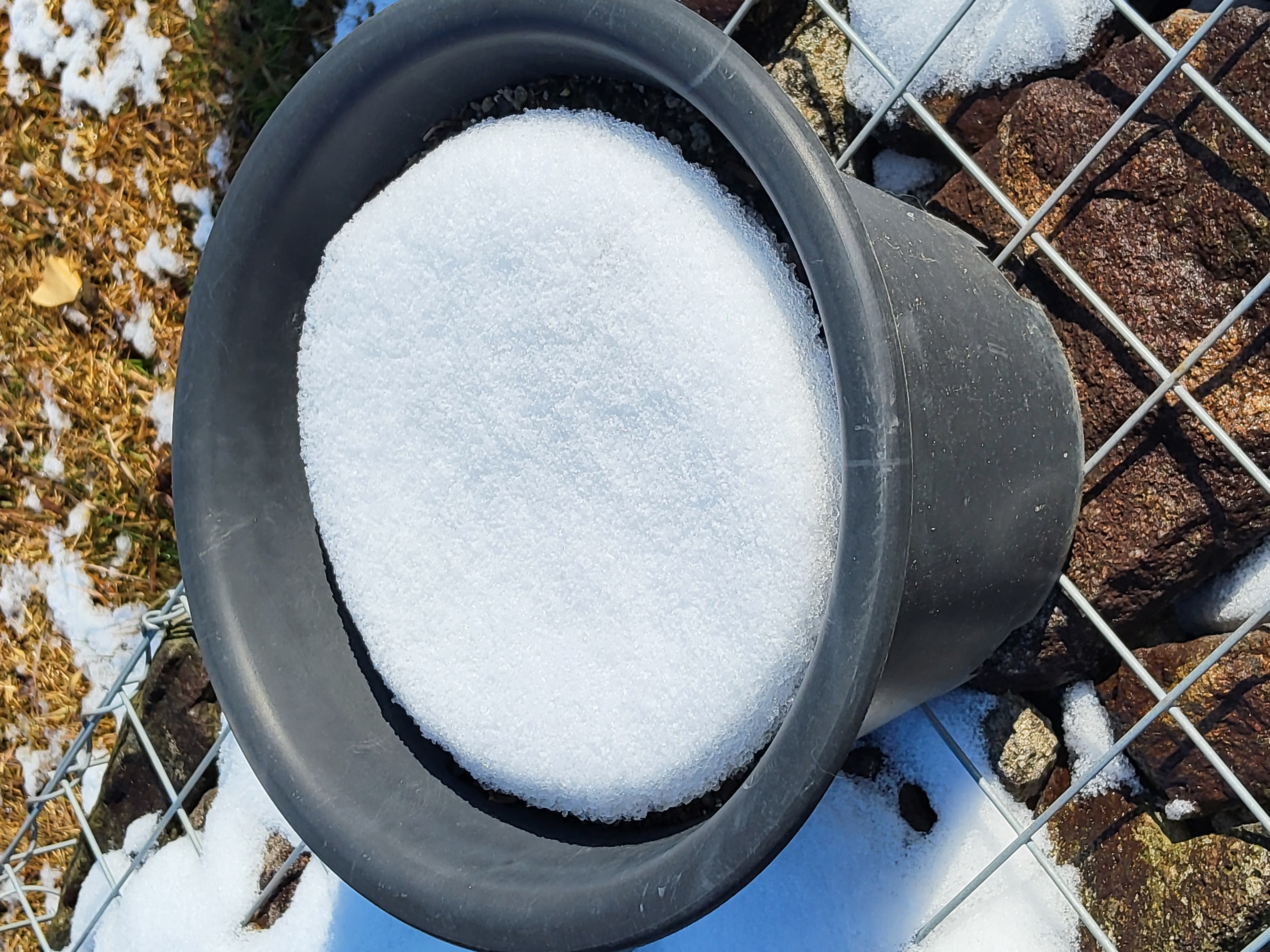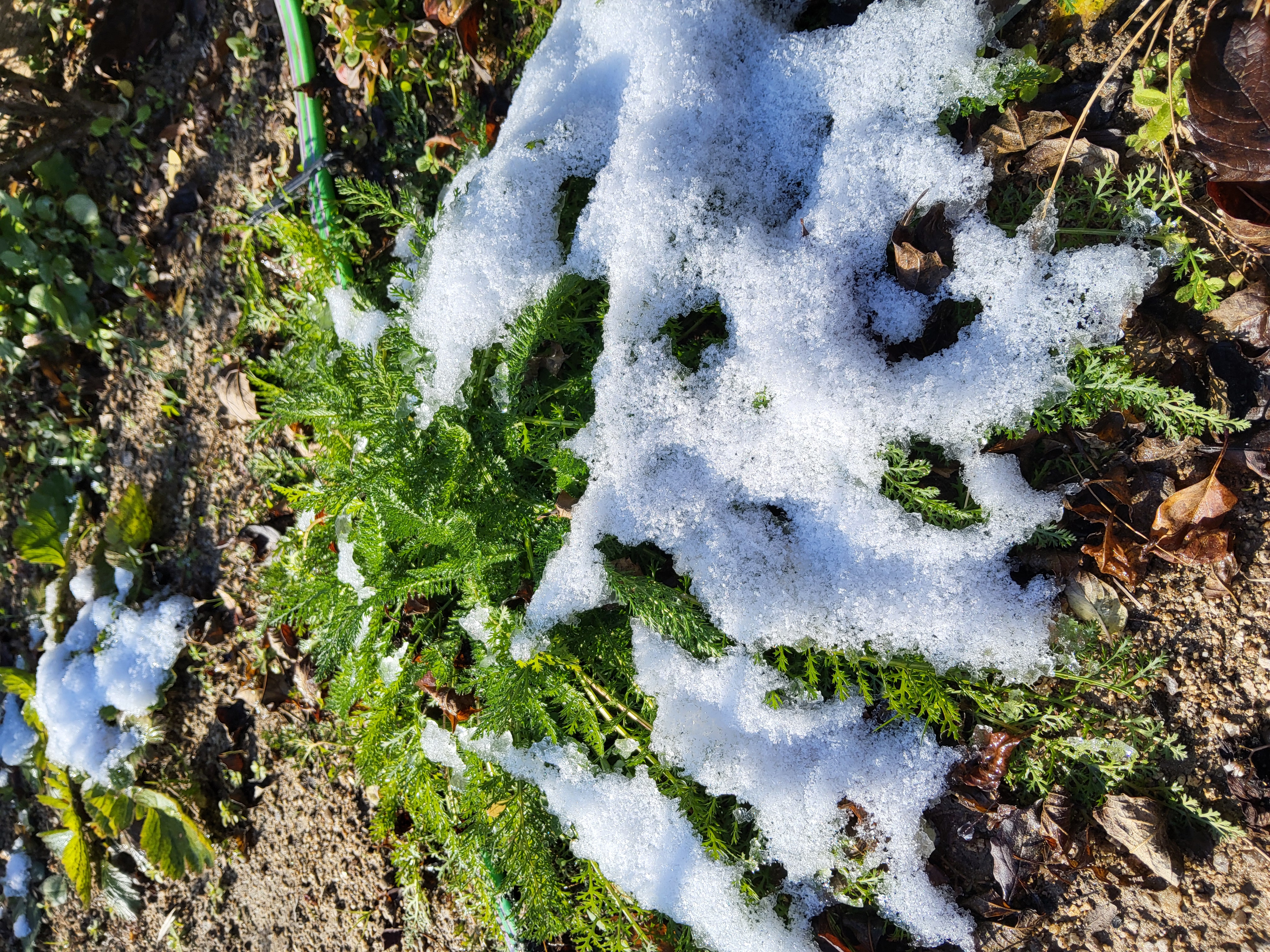 부쩍 커진 팜파스 밑둥에도 눈이 들어갔다
