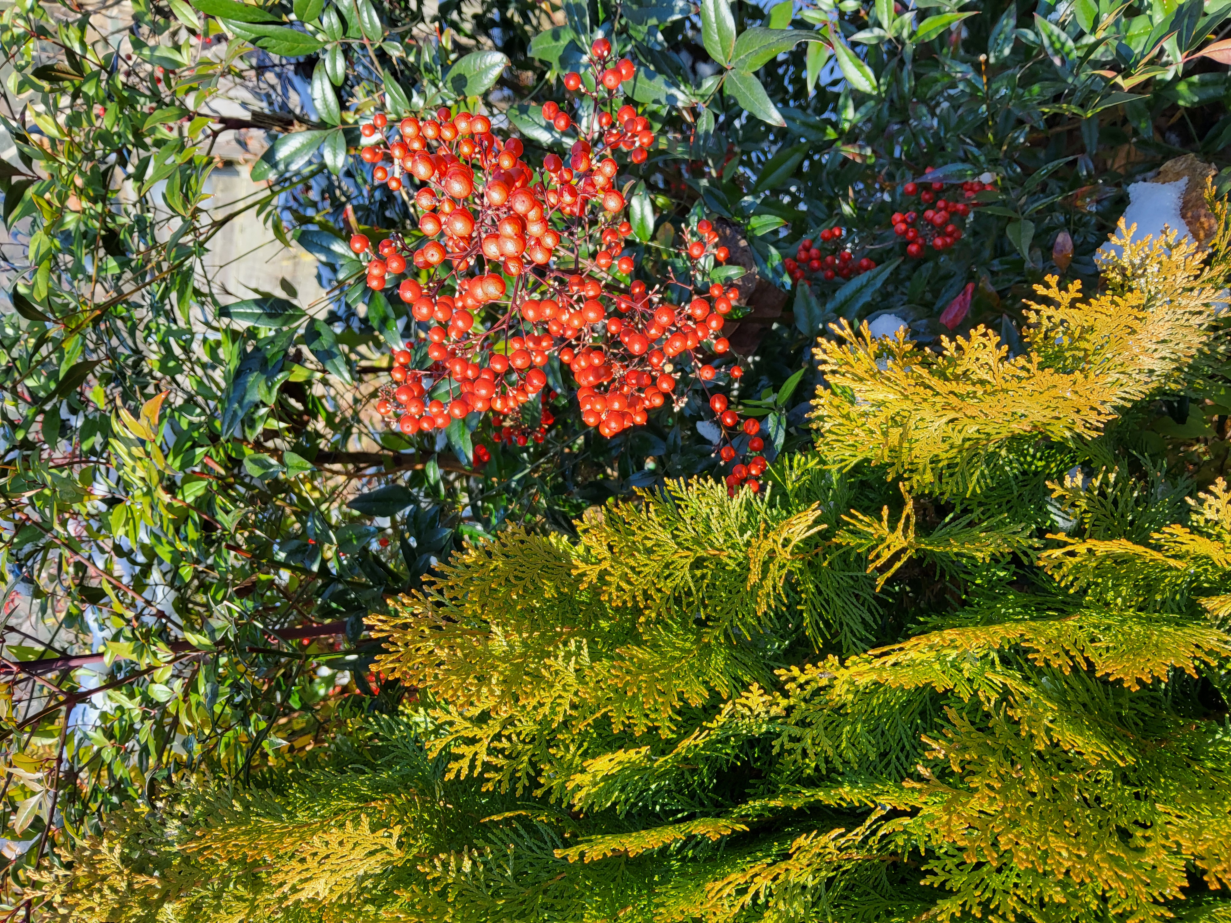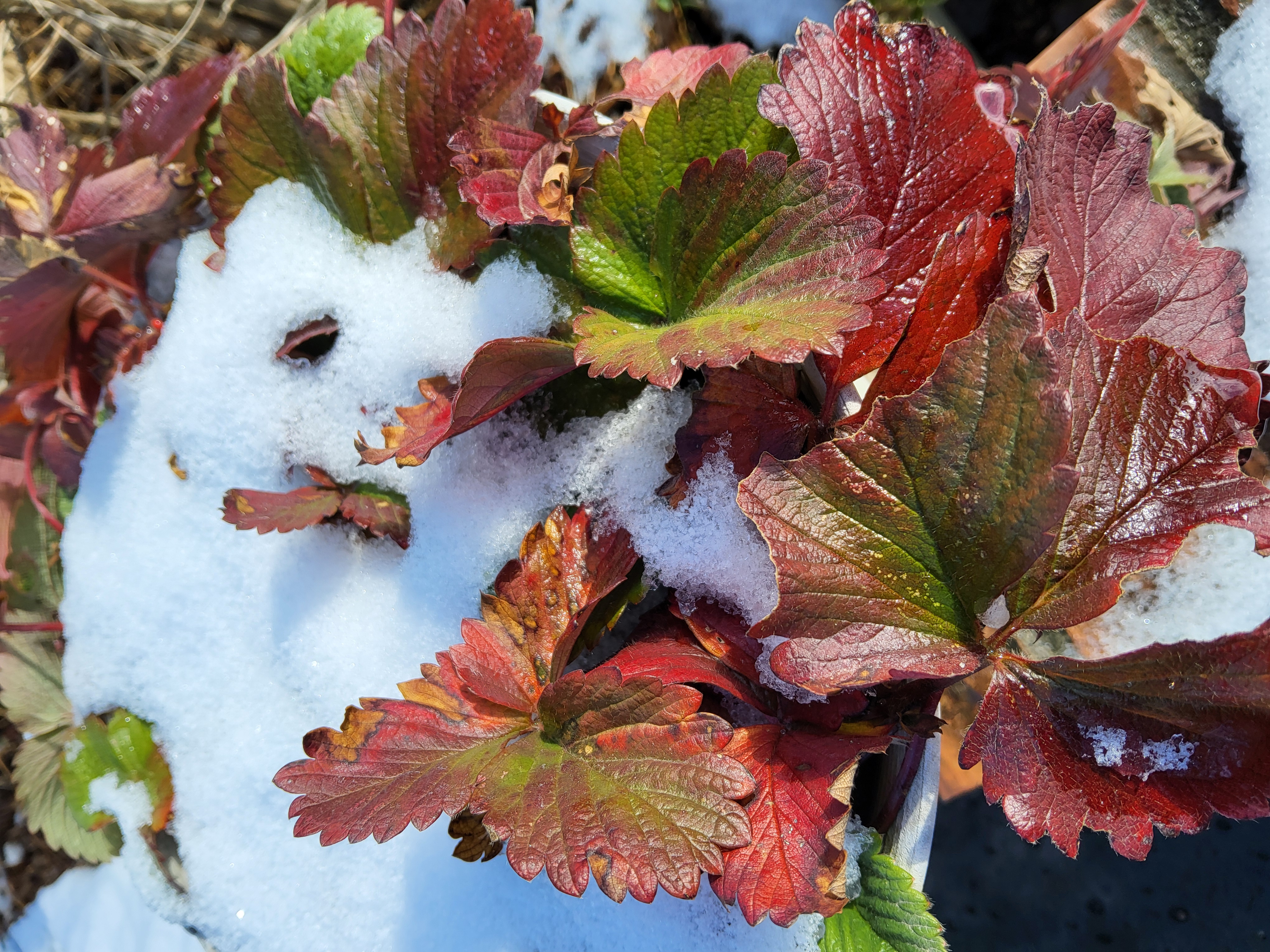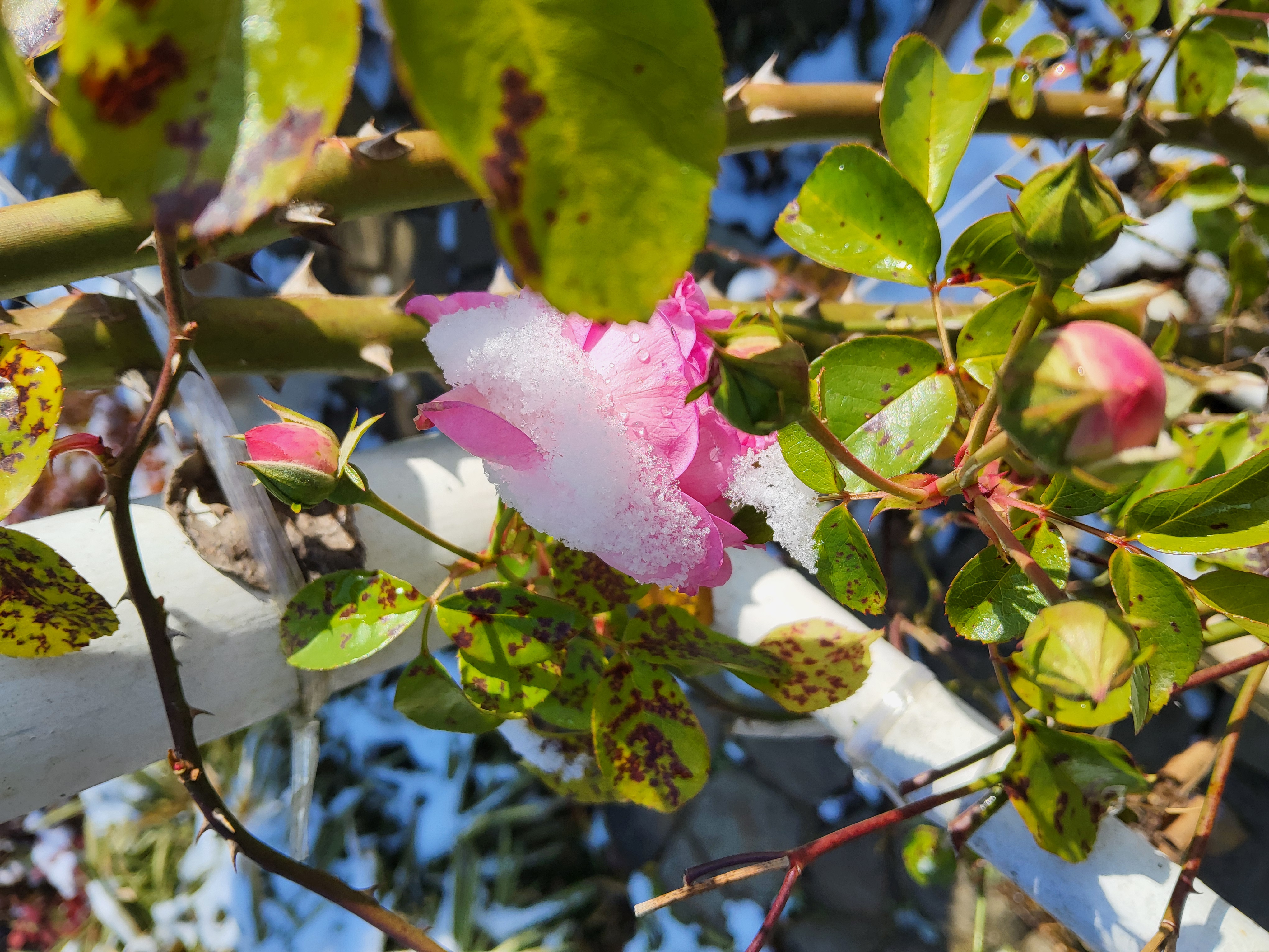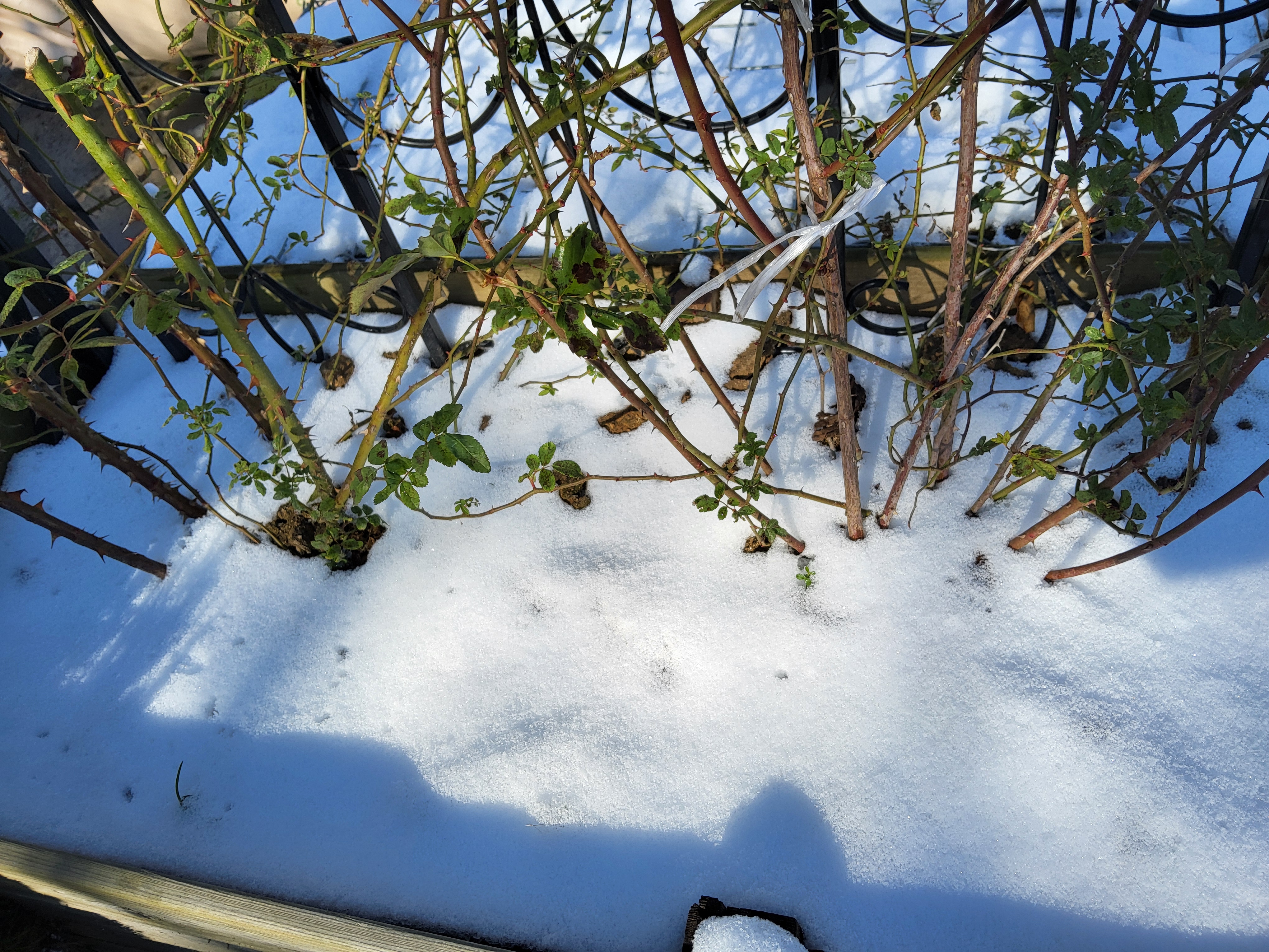 부쩍 커진 팜파스 밑둥에도 눈이 들어갔다