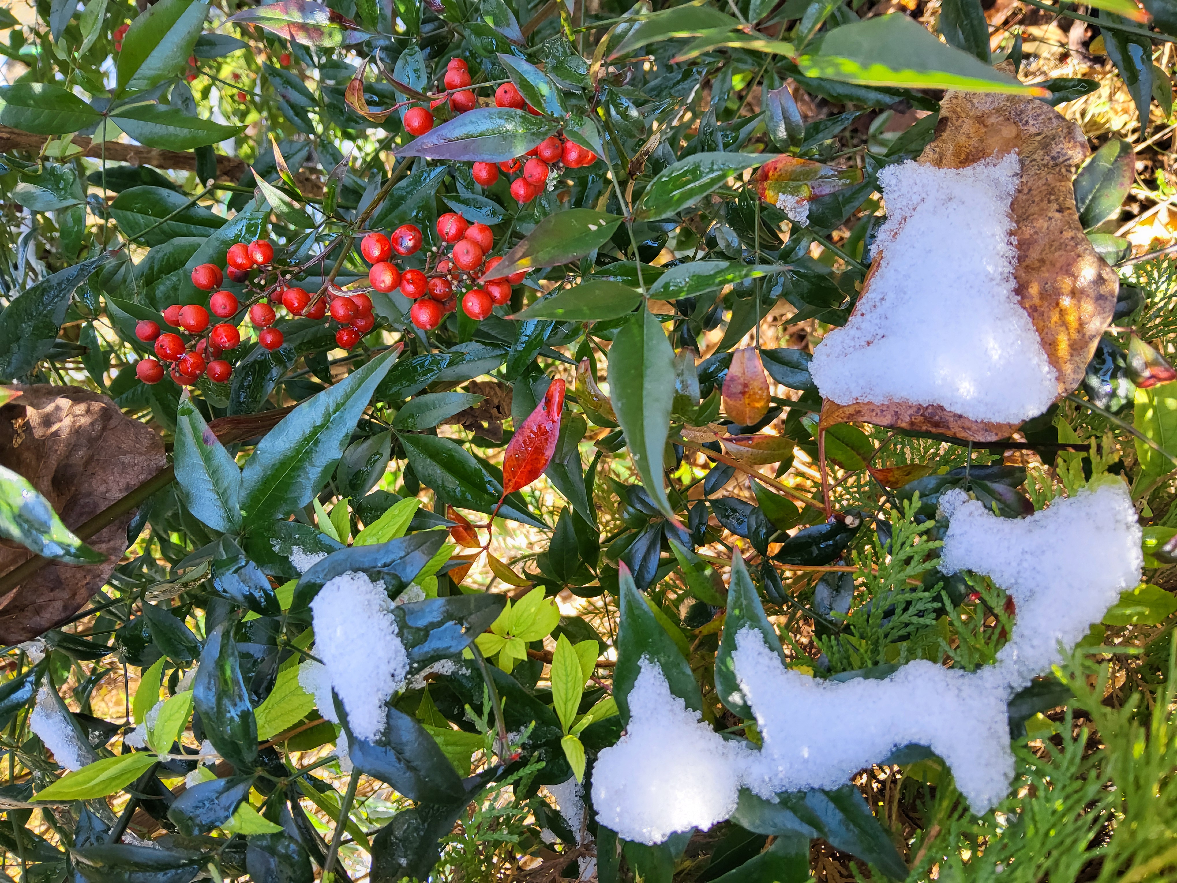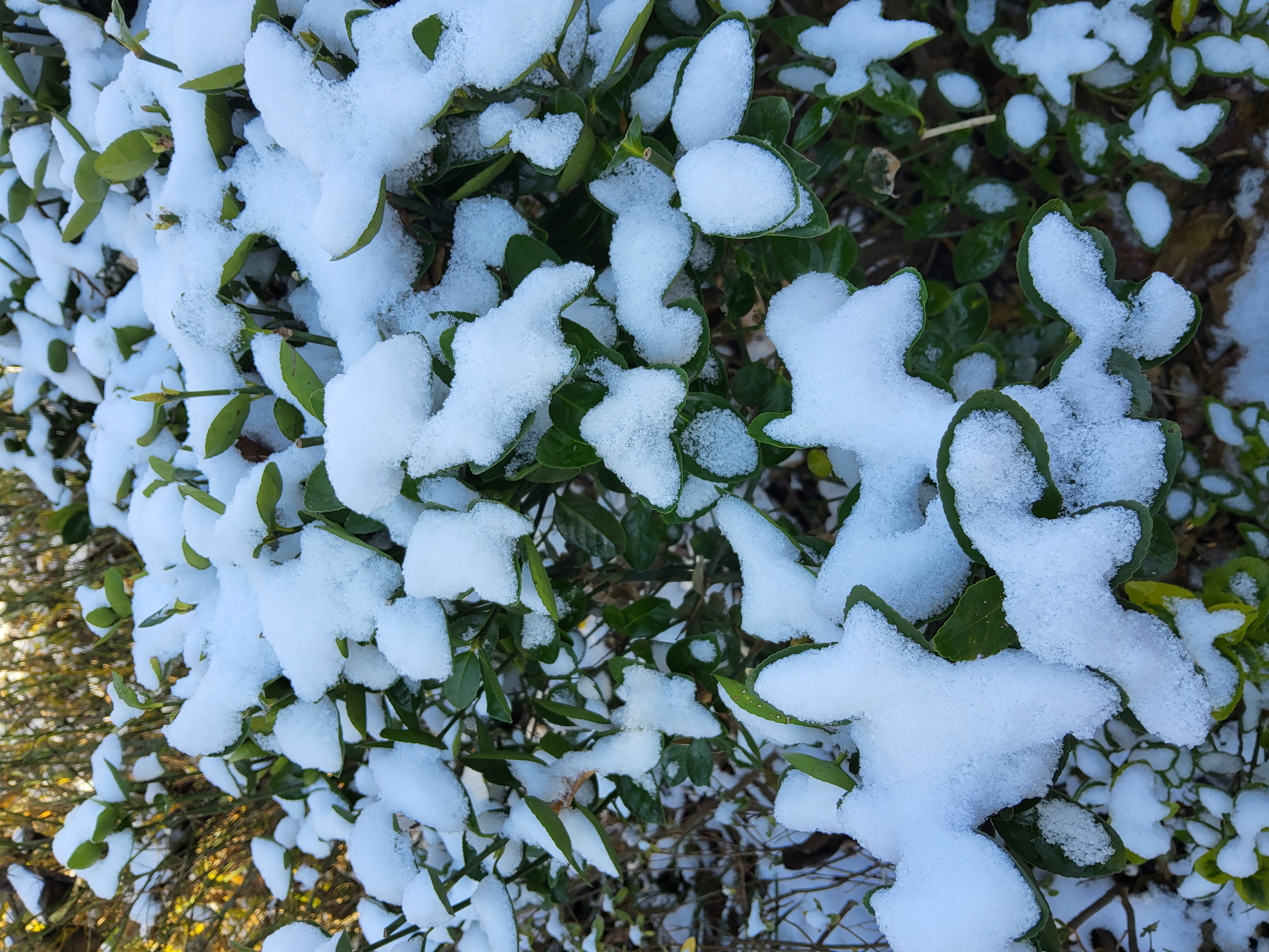 저마다의 모양대로 눈을 품은 모습이 각각 눈길을 끈다 각자의 형태만큼 눈을 담았다