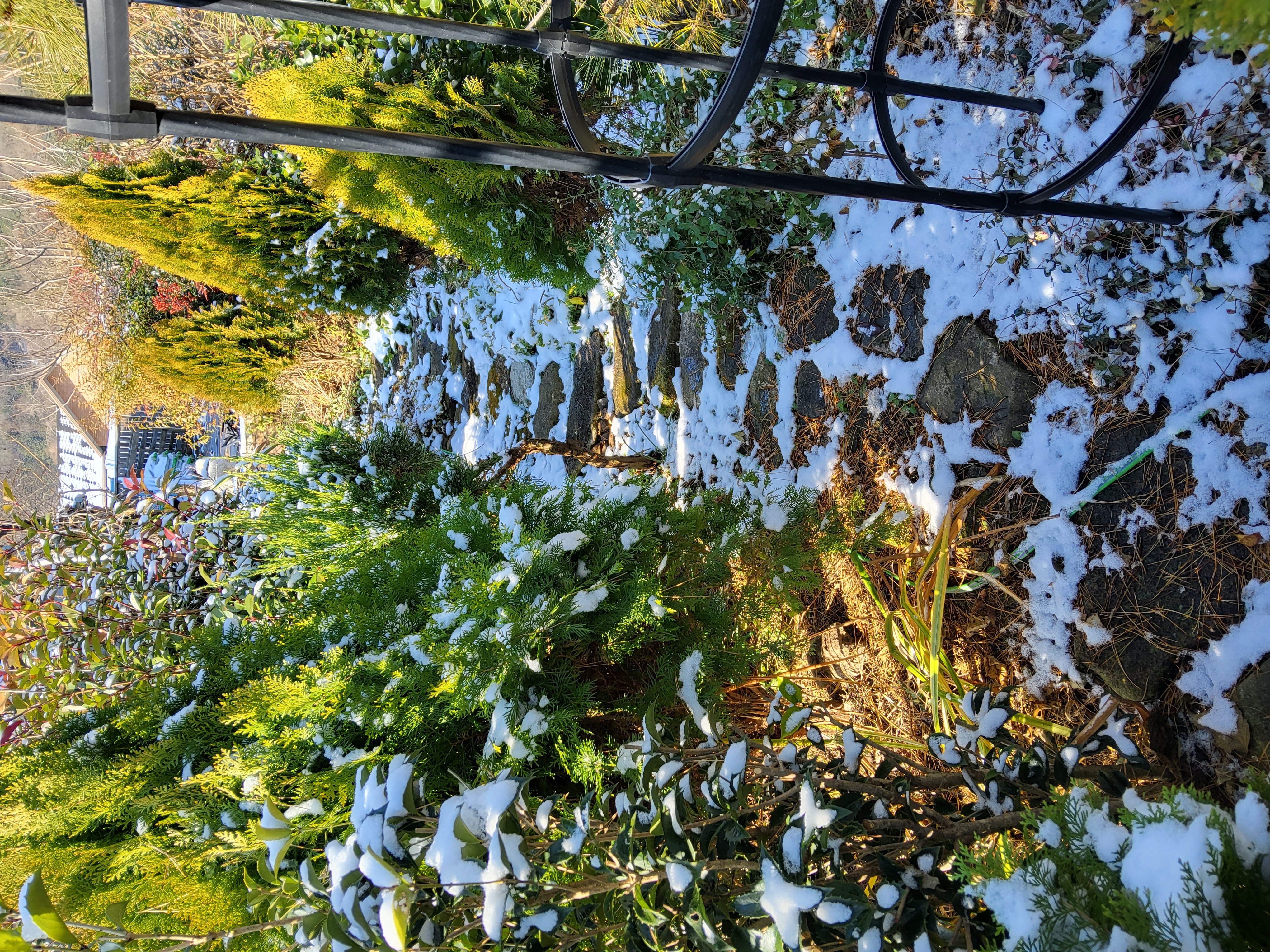 이틀동안 지지대아래 힘들게 만든 개비온의자위에도 눈이 쌓였다